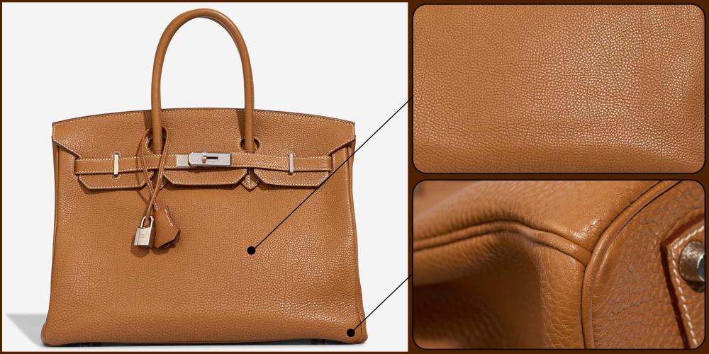 Textured leathers like Togo and Clemence hide wear more effectively, while smooth leathers like Swift show it more clearly. Neither outcome is a flaw. It is simply a different visual story.