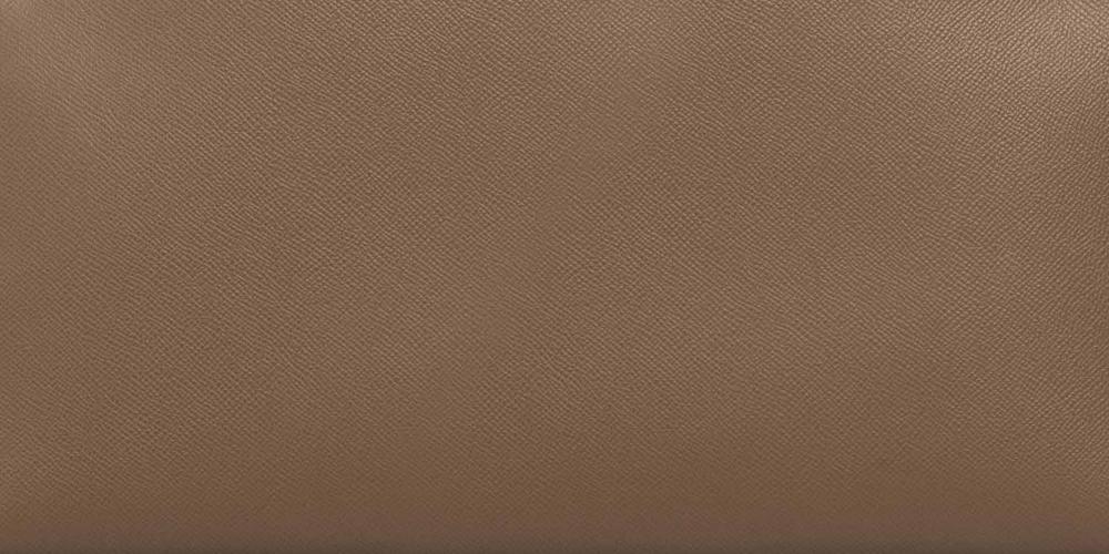 Epsom leather is stamped and coated, giving it a structured shape and a slightly rigid feel. Because of this finish, it is one of the most rain resistant Hermes leathers.