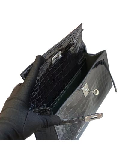 A1: It is a mirror-quality, one-to-one re-creation of the world’s most coveted mini bag, designed to deliver the same elegance and proportions as the boutique piece. It’s a super close copy of the famous Mini Kelly II — same size, same stitching, same vibe — but way more affordable. The only difference is the path of purchase. The design, stitching, lining, and engravings are crafted to align with Hermès standards, but the cost is a fraction of boutique pricing.