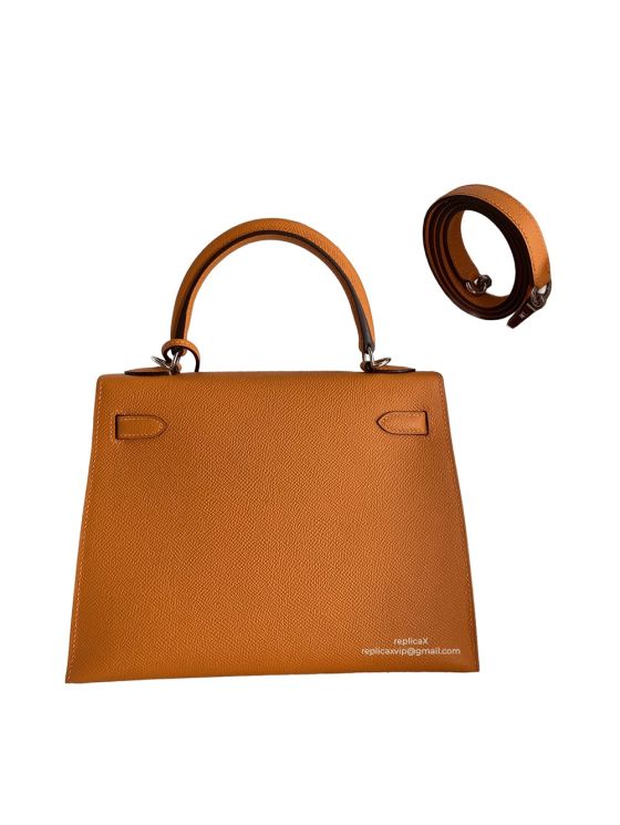 The Hermès Kelly replica bag is a precise one-to-one copy of the iconic design. Built with factory-grade construction, it features durable metal hardware, a secure closure, and reinforced stitching. The structure holds its shape, whether carried by the top handle or detachable strap. Each replica includes the ‘Hermès – Made in Paris’ heat stamp, dust bag, orange box, and protective felt. This dupe gives the Kelly look at a fraction of the price.